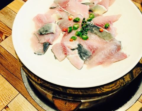 之前买的9块代100的券,确实很合算。就是位置太远了,哈哈哈。约了盆友俩人去,地铁转公交,到的时候差点7点了,人都差不多坐满了,没位置,只能给我们安排到一个没有炉子的桌子坐。鱼有五种,花鲢,梭边鱼,裸斑...