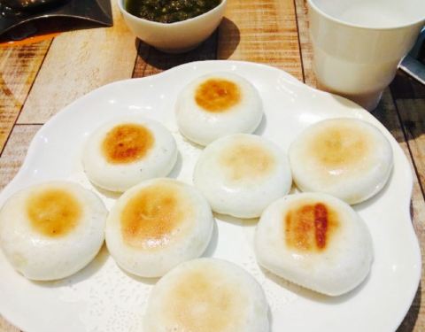 ...装修风格和墙上挂着简洁的解释,旁边是小吃的现场制作区,还有一个小小的自助区,用餐环境看着还不错