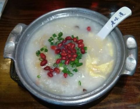 四颗星,子曰禮茶居(金河水岸店)还是很赞的,有机会可以尝试一下!店铺装修的很有特色,24小时营业,这个厉害啊!可以自己带茶叶过来,还可以寄存,所以特别适合喝茶!早上起来,过来喝喝茶,这也是蛮惬意的。 荔湾艇仔粥,粥的味道不错,环绕着一些葱花,很香!花生米也是韧度刚刚好,嚼的很有劲,底部的鱼片很鲜,这个粥下次过来继续点。 经典石磨鸡蛋肠,拉的比较薄,加上少许辣椒圈,美味十足。 鼓汁蒸凤爪,这个感觉一般般,太咸了,差评呀!