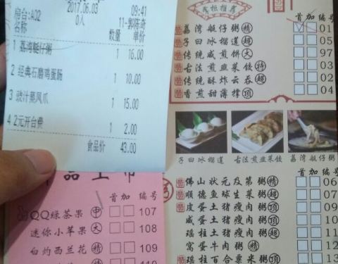 在顺德吃的这家茶点,两个人点了个粥、金钱肚、三丝炒面跟韭菜煎饺,粥很香滑,炒面也很好吃!而且分量挺大的。茶水要自助煮,装修环境还不错,卫生感觉可以做的再好些。