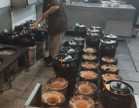 佛山的特色菜浓汤,听说是祖传秘方。用煤炉煲六个小时以上的浓汤,每天的数量都是有限的,但来的人又特别多,所以不早点到根本就没有汤。我们6点10分到,刚好拿到全场最后一煲的汤,能喝上这煲老火汤就已经很满足...