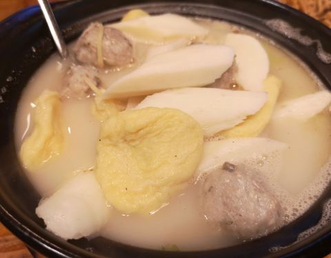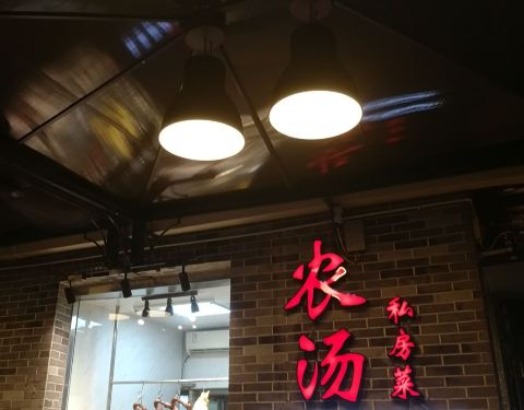 搜索到这家农汤私房菜,看介绍他家的汤很多人推荐,于是就来试试,晚上6点半左右来到已经是满座了,只能等位,幸好刚好有人走很快就有位置了。坐下来第一时间点汤,今天有6款不同的汤。粉葛赤小豆煲鲮鱼,土茯苓煲草龟,花生眉豆煲鸡脚,虫草花灵芝煲水鸭,冬瓜薏米煲猪踭,姬松茸煲老鸽。晚上6点半就只剩下2种汤,水鸭汤和冬瓜汤,犹豫了一下,就只剩冬瓜汤了,于是立刻下订。 这里的汤很受欢迎,都是老火靓汤,晚上的汤都是中午午市后开始煲。厨房看到一个个大汤煲,煲汤的火是传统的蜂窝煤,煲出来的汤特别浓香,限量供应,手快有手慢无。我们6人要了一煲大的汤,每人可以分到2碗汤,汤料很足,一大碟,汤味浓郁,很赞。 猪肠,焖得很软,酱汁卤得很入味,但份量有点少。 姜汁炒芥兰,味道不错。 鱼丸鱼腐煲,鱼丸比较弹牙,没有什么粉味,鱼腐相对比较差,山药也比较粉。 炒面,这个味道不错,用的是伊面,面不会炒得很干。 总体来说味道不错,可以有下次再试试其他的汤,据闻可以提前订位订汤,建议还是提前预定吧。