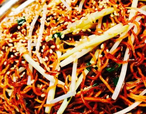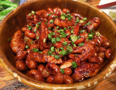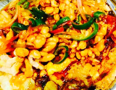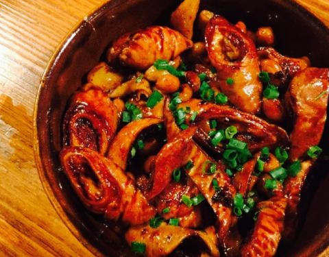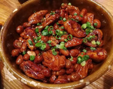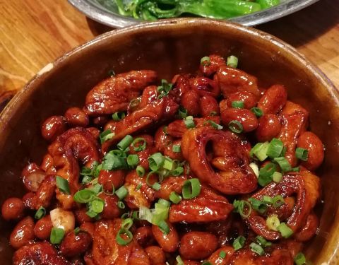 猪大肠,味道很好,味道带点甜,下面铺着花生,也挺好吃的。点的菜具体名字不太记得