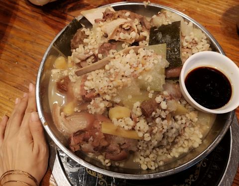 从世纪莲地铁站打车过来大概十几分钟,去的时候已经是晚上6点,已经需要等位,好在看到有人结账马上拿了。本来想喝龟汤不过已经没有剩下最后一煲冬瓜薏米猪踭汤,大煲148元,料好足,满满一大盘,猪踭肉煲得很霖,配点生抽一起吃味道很香。份量大概可以6人每人喝两碗。