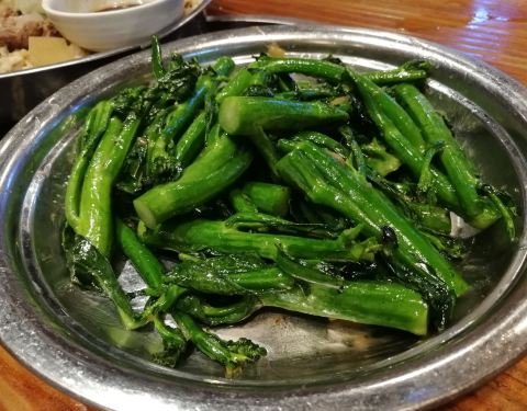 很可惜去得有些晚了好多招牌菜都没得点了,于是再有限的选择里吃了咖喱虾大肠和青菜。环境一般啦,大中午坐外面用餐挺热的。菜都很大份,两个人吃三个菜已经很饱了。咖喱虾味道很浓重,不是甜腻腻的那种咖喱,吃起来蛮带感的。炒芥兰大概是下了糖。有点甜甜的蛮鲜美,菜都很新鲜只留最嫩的部分炒。大肠处理得很干净好评。