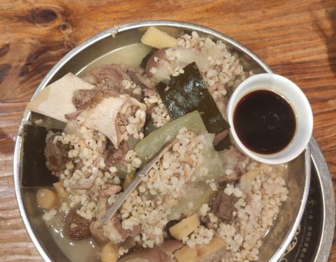本来想喝龟汤不过已经没有剩下最后一煲冬瓜薏米猪踭汤,大煲148元,料好足,满满一大盘,猪踭肉煲得很霖