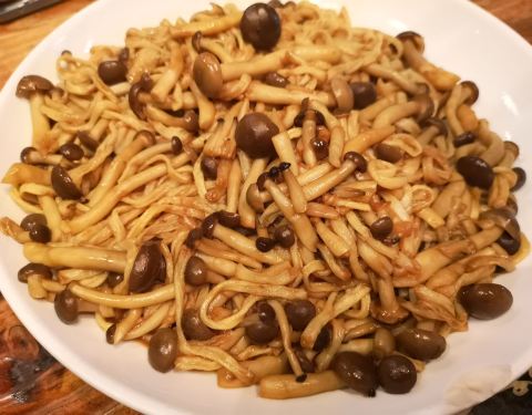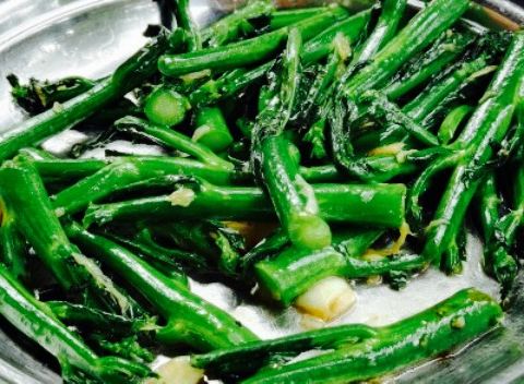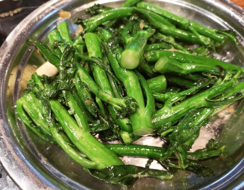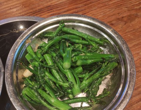 猪肠,焖得很软,酱汁卤得很入味,但份量有点少。 姜汁炒芥兰,味道不错