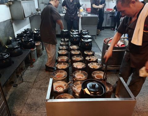 以浓汤的特色汤水为特色的餐厅,也是因为它的老火靓汤吸引大家来品尝。这些老火靓汤采用炭炉煲,煲几个小时以上,每日限量供应,售完即止,所以要饮上老火靓汤就要提前过来预订了。汤会有变化,但大部分的特色汤是固定的。一煲汤的汤料是非常足的,可以捞出一大碟。除了喝汤还可以点几个小炒菜也是不错的,
