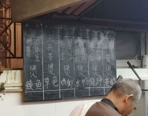 佛山的特色菜浓汤,听说是祖传秘方。用煤炉煲六个小时以上的浓汤,每天的数量都是有限的,但来的人又特别多,所以不早点到根本就没有汤。我们6点10分到,刚好拿到全场最后一煲的汤,能喝上这煲老火汤就已经很满足了,菜也非常好吃。