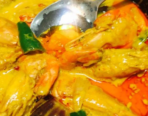 很可惜去得有些晚了好多招牌菜都没得点了,于是再有限的选择里吃了咖喱虾大肠和青菜。环境一般啦,大中午坐外面用餐挺热的。菜都很大份,两个人吃三个菜已经很饱了。咖喱虾味道很浓重,不是甜腻腻的那种咖喱,吃...