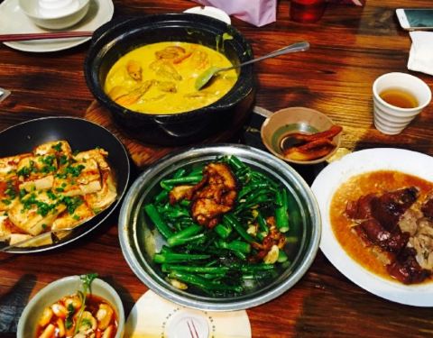 晚饭不知道去哪儿吃好,搜索附近的食堂,看出这家的评论还可以又比较近,就过来尝试。到的时候是六点四十左右,已经有人在等位,排位是自己在收银台写下人数和电话,但很没秩序,我们等了半小时,中间很多比我们迟来的人看到有人买单走了直接就坐下去,跟服务员理论,解释说她们都是先打电话预定的,但还好也赶紧安排座位给我们先。环境,看上去像一栋私人住宅,没上去楼上,楼上看起来像包间,一楼在门外通道也摆了些位置,都坐满了,就餐环境比较一般。服务,因为位置比较散,服务员又不是很多,服务有点跟不上。菜的口味其实还不错,但才七点,老火汤没了,烧鹅也没了,说外面那些都被预约的了,告诉我们要吃这些招牌菜要提早打电话预约。点的菜具体名字不太记得。猪大肠,味道很好,味道带点甜,下面铺着花生,也挺好吃的。咖喱鸡,份量挺大,咖喱汁里应该有下椰浆,挺香但又不会太腻,很下酒,鸡肉觉得是爆炒过的,里面还有切大块的洋芋。豆腐,比较嫰,吃起来挺滑的,而且吃的出豆香味,挺好吃的。整体口味不错,价位也算合理,希望在排队等号和招牌菜供应的数量上改进下。