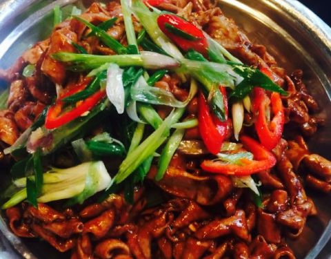 来过好几次,每次来都是好多人。五个人点了四菜一汤,汤很浓料好多,看得出来是煲了很长时间。咖喱虾味道一般般用的是大头虾,价钱挺贵的108一斤还要收15元的加工费。招牌猪手味道不错就是肉感比较硬炖得时间不够...