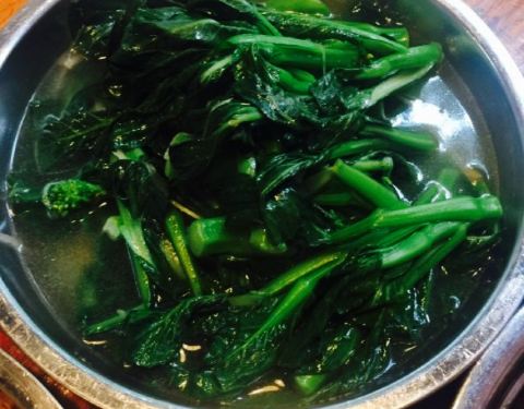 很可惜去得有些晚了好多招牌菜都没得点了,于是再有限的选择里吃了咖喱虾大肠和青菜。大肠处理得很干净好评