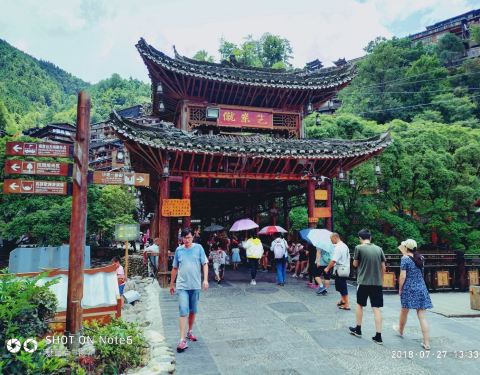 是苗寨内非常知名的饭店,规模也很大,木结构的苗家传统建筑,装饰古朴,这里为顾客提供一日三餐,有各种传统点心、家常菜、火锅及当地特色酸汤系列菜肴。