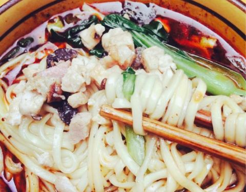 ...,的确让人很放心,这家面也特别可口,面臊子全是货真价实,总之特别可口,大家来青城山一定要来品尝