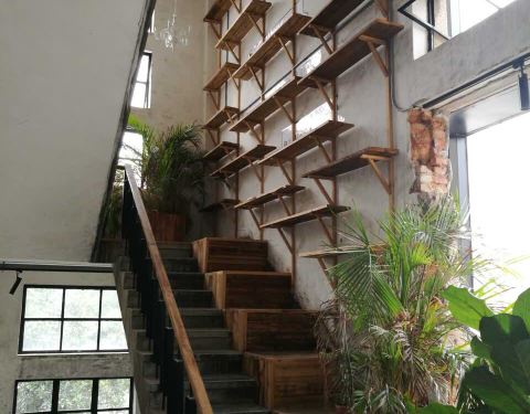 锅炉咖啡(无门票,免费) 踏进店里的那瞬间,迎面扑来一股空旷静美之意,让我忍不住惊叹一句“天哪,好酷”!充满感官刺激的12米的挑高空间,让对于空间的无限想象成为可能。门店招牌花砖与水磨石相碰撞的一层老锅炉内养了一堆多肉和绿植通往二层的楼梯安静的二层拿铁喝到饱锅炉咖啡一共有三层,除了空旷的一层,二层反而更得我心。不似一层般空旷霸气,二层相对来说位置窄了许多,斑斓的墙,黑铁栈道,也有难得的清净!窗外树影婆娑,阳光洒落在斑驳的墙面上……