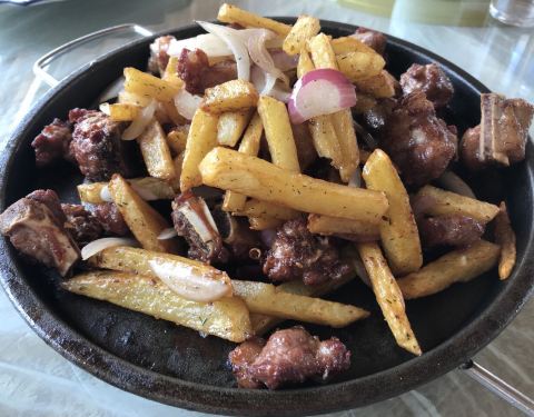 恩和小镇子不是很大,老板挺热情好客的。点的蓝莓果酱大列巴,服务员推荐的排骨煎土豆,属于俄罗斯菜,里面有圆葱,土豆和排骨。吃起来特别好吃。有机会大家尝尝吧。