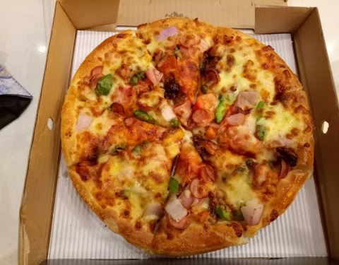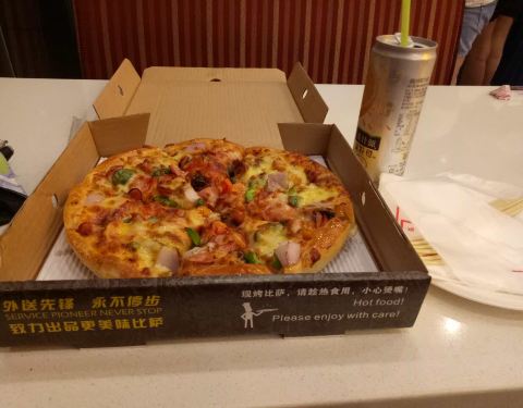 一家很便宜实在的pizza店,而且开发区这边也确实找不到什么特别好吃的餐饮店。这家送外卖配的各种餐具手套等等非常足够,记得有次买很多pizza聚餐还送了一个黄色的大象🐘 厚底披萨🍕是我比较喜欢的,酱料也多,但是拉丝情况比较一般。