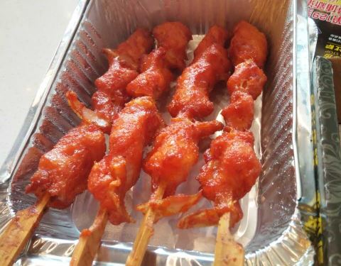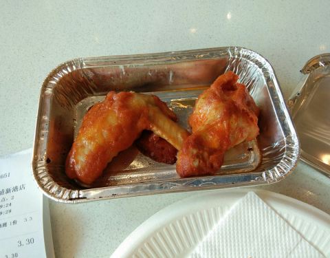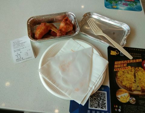 尊宝比萨(开发区青年路)――不就吃个新奥尔良烤鸡翅嘛(原价11元、团购特价4.3元,俺抢到了大特价1元)!又碟子、叉子、手套啥的,搞得那么隆重、大排场干嘛?!原来是现烤的,足足等了10分钟才上菜,服务员小妹直接端来,态度不错哦!的确是用酱汁烤的,不是油炸的,味道还不错哦!可惜只能抢一次。