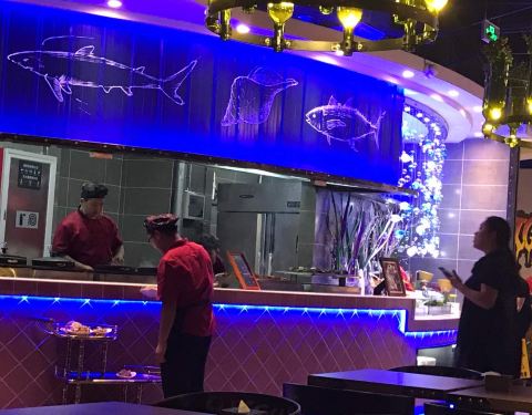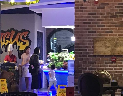真心不错,烧烤挺多,菜品质量挺好,水果新鲜,环境不错,可以爱情满满也可以带孩子来享受生活,有些海底特色装饰。
