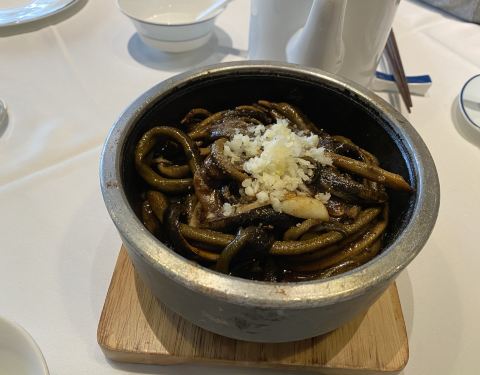 民国红公馆 以民国为主题元素 统一装修餐具服装风格 主打淮扬菜 入围美食林餐厅 黑蒜长江鳗 特地点了尝试 怀念一下小时候的话梅河鳗 黑蒜的梅酸味替代了话梅 有异曲同工之妙 焕章松鼠桂鱼 肉丁比较细 其余中规中...