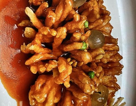 香煎牛眼粒非常有韧性,量足,肉质很嫩,味道还不错,雨花石汤丸一份只有两颗,没有说得那么传奇,比较失望