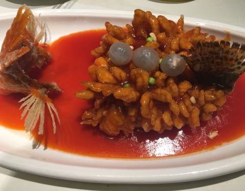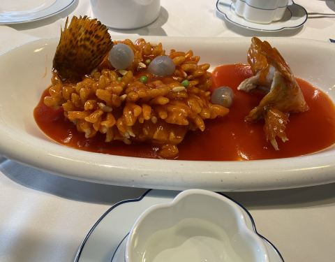 比较正中的淮阳菜,布置也是民国风情,用餐环境安静,菜色选择多,松鼠桂鱼开起来就很有食欲,酱汁很多,酸酸甜甜很开胃,太白长江虾颜色比较白,但是清理得很干净,美玲粥是比较养生吧,里面放了枸杞,百合,淮山等等,里面放了豆浆,味道很香,味道甜甜的,香煎牛眼粒非常有韧性,量足,肉质很嫩,味道还不错,雨花石汤丸一份只有两颗,没有说得那么传奇,比较失望。