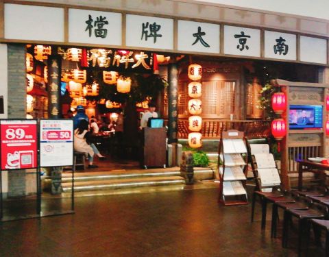 南京大排档 在这里最好的位置,处于万象城天空之城的门口,中央有小小广场,人员川流不息,这里菜品...