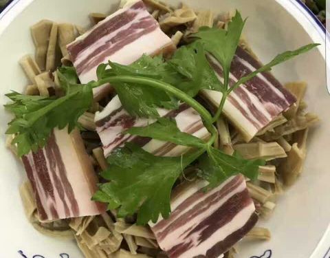 临安天目山的石笋干加上自家腌制的咸肉在一起蒸,味道美极了