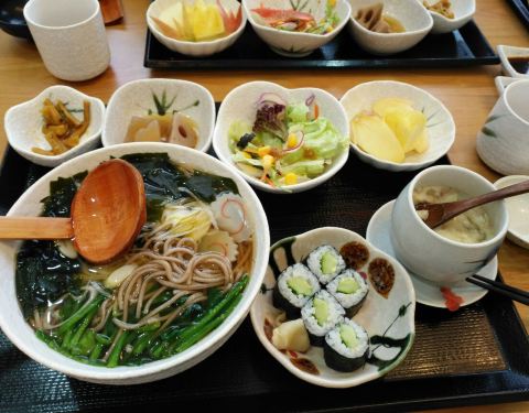 这家店位于欧陆风情街8号,周围都是公司,中午人很多,晚上人就不多了。第一次去,店内装修日式风格,进包厢要脱鞋,包厢挺小的。由于我对生的食物有心理阴影了,就没有点生鱼片之类的,点了中午的一份熟的荞麦面套餐。一份套餐好几个小碟子,看着少,吃完也很饱了。就是菜品都没什么味道,很清淡。总体来说,偶尔来吃吃可以的。