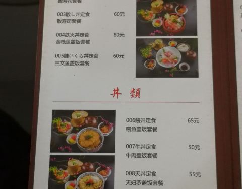 花见套餐,45—65不等,烤鳗鱼套餐65,鲜嫩肥美,天妇罗套餐55,配菜有色拉,水果,炖蛋,海带汤等。内有包厢,日式风格,环境还可以。