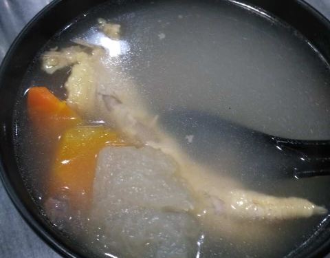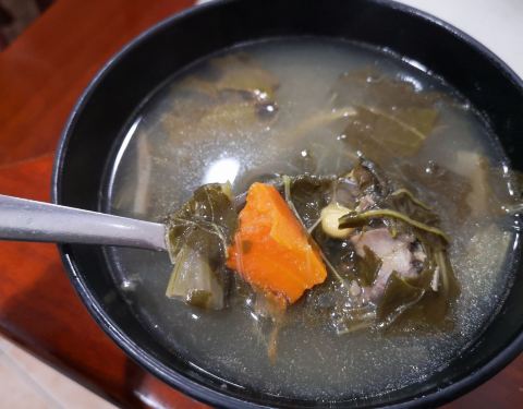 老字号 第一次尝试 虽然不用排队,但人也不少,环境很是干净 即叫即做 点菜付款后先来一大碗例汤——北杏黄豆龙骨菜干汤 绝对是老火汤 十五分钟后煲仔饭出炉 有锅气、可口、饭香