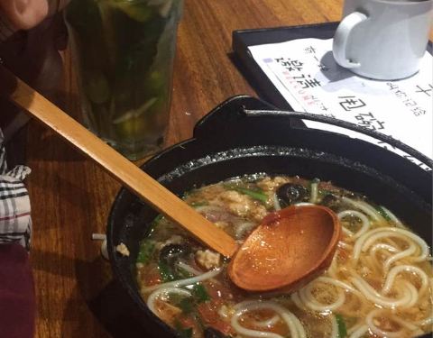 冲着饵丝去的,结果发现太失望了,和云南的差远了不好吃就算了,还像口香糖一样粘牙!!!!最可恶的是茶水,用个保温壶装,倒出来的都是100°的滚水,是想看食客表演生吞滚水吗?!!!!!!!茶水这么膈应人居...
