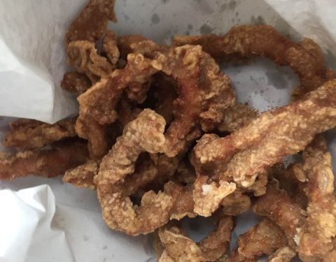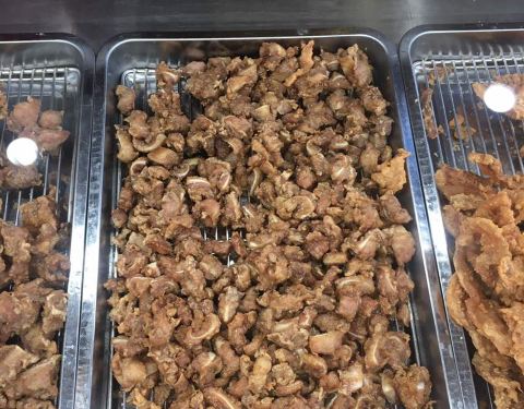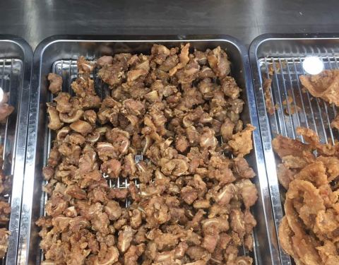 浮山后的埠西市场真的是好大,不光东西齐全,而且种类等也是无与伦比的。今天介绍的这家店是靠近埠西市场西门,面朝马路的一家门头房,主营博山炸货。最近老板扩大业务,门头不停的装修调整,但是还是比较好找。这里的主营是炸货,肉类的炸货各种各样的,有脆骨里脊肉鸡翅排骨五花肉等,价格都一样可以拼,老人小孩适合五花肉,酥脆而且香,牙口不好的也方便咀嚼。其他的的炸丸子,风干鸡,炸鱿鱼都很不错。另外,他就的芝麻饼和芝麻肉饼也很经典,现场制作,刚出炉非常的香,面非常的筋道有嚼劲。中午头和晚高峰人非常多,老远就能味道香味。
