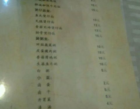 【环境】 店面比较方正,吃饭的人也到八成以上吧,但绝没有达到之前认为的热度。店里桌子上都会有块玻璃,压着菜单,下面还有一个沙茶的饨品,但看到几乎没人点,也就做罢。