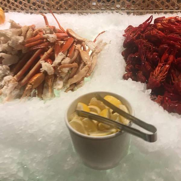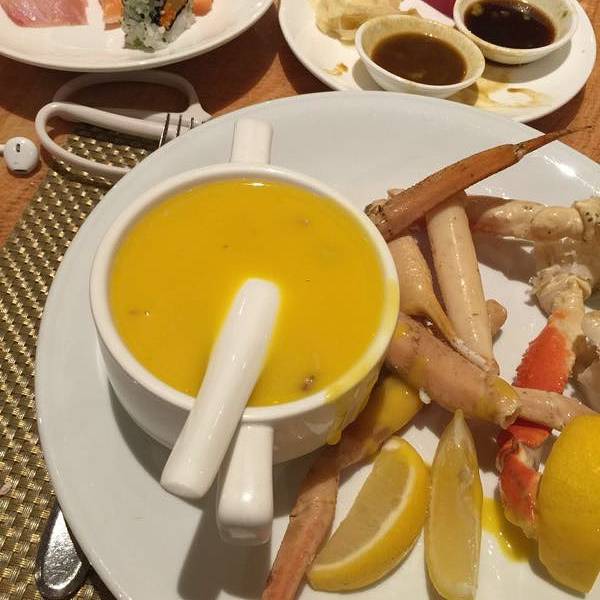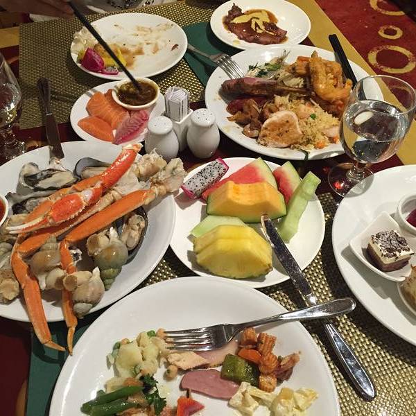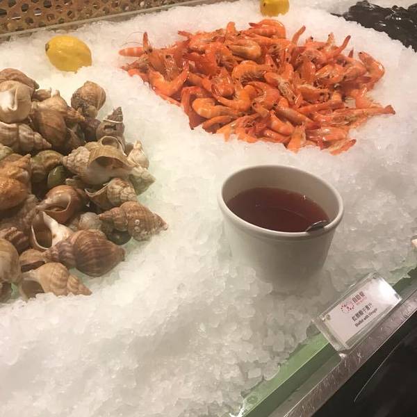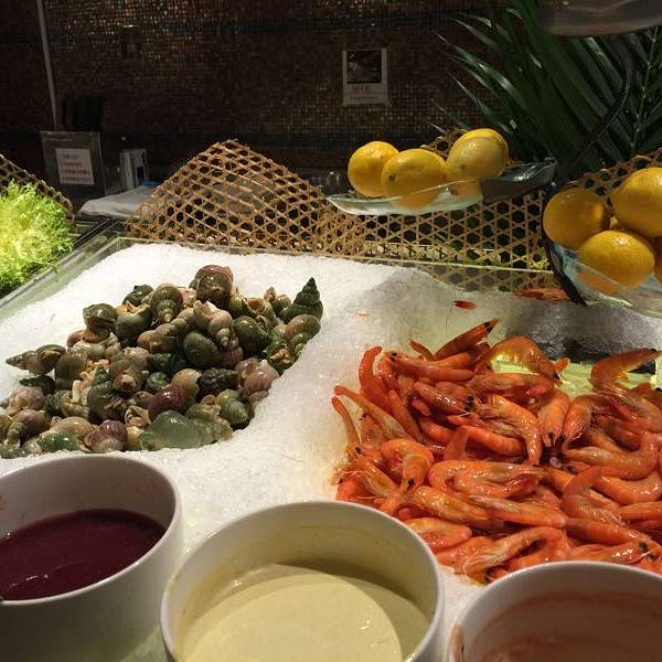 海鲜有刺身,生蚝,蟹脚等,熟食类也较多,但没粥,汤和甜品类也较少。