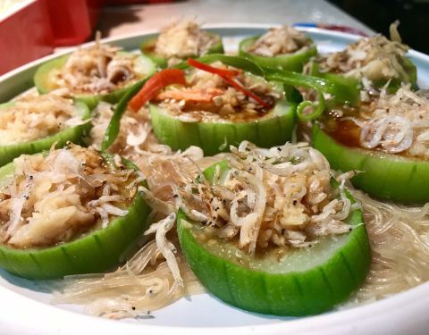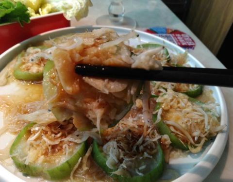 - 金蒜海味肉瓜:丝瓜入味,粉丝吸收了汤汁,显得饱满。 在搭配多彩的星云,很满足