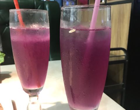 星空饮品,蓝紫渐变好梦幻的冷饮,好美啊,酸酸甜甜的。 菜瓜是闺蜜最爱,她加点的,不错吃,鲜咸,清甜