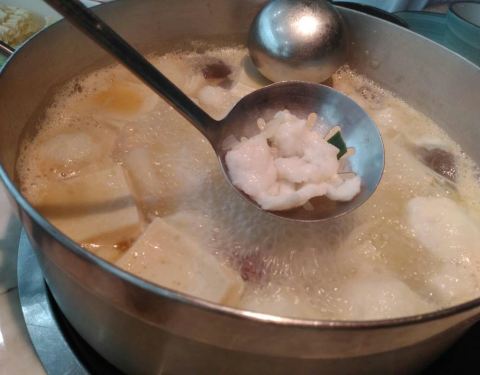 珑拾,已经不止一次来到这里了。之前吃石斑鱼干锅,这次吃【石斑鱼头火锅】,都很好吃。果然是石斑鱼料理专家。 鱼头经过油炸,熬出来的汤头奶白奶白的,很浓郁。涮了【石斑鱼肉片】,特别爽滑细嫩。 全家福套餐...