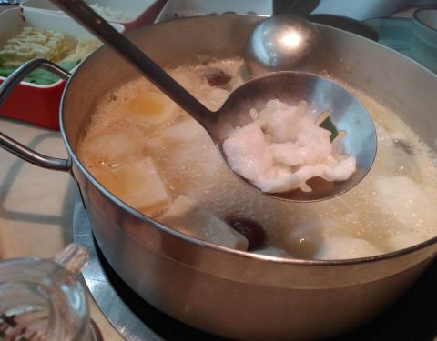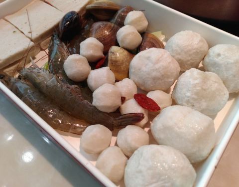- 鱼头肉很Q嫩弹牙,火锅料也不少,丸子香菇虾鱼头白菜金针菇面,特别喜欢那鱼肉,煮完很软嫩入口