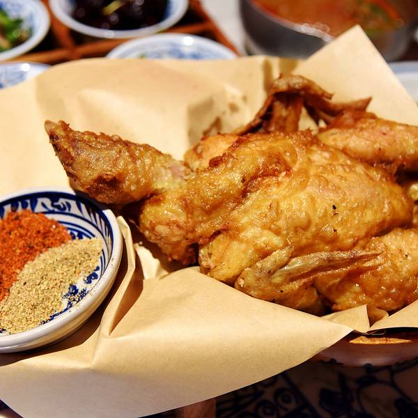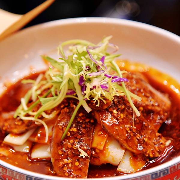 作为十三朝古都的西安,是陕菜的代表城市和发源地,陕菜既有精雅的高档菜,又有普通的中低档菜。来西安吃陕菜的特色店就是长安大牌档。在西安市内有几个分店,我每次每次都是去的长安大牌档(凤舞朝阳店)。这家门店位于益田假日世界购物中心西侧,门面复古,黑底金字店招,整体环境非常古典优雅,而且挨着古城墙、钟楼很近。他家的陕菜真的太丰富了,推荐下:葫芦鸡、豆皮涮牛肚锅、冰草酸奶沙拉、烤筋、面皮捞牛肉、毛笔酥、麻将十三幺、民间烤枣馍、关中六小碗、油泼辣子鱼、一口香臊子面、桂花绿豆凉糕等。其中最具代表性的就是葫芦鸡,始于唐代,做工复杂,分清煮、笼蒸、油炸三道工序,保存鸡的完整性,呈金黄色,皮酥肉嫩,香烂味醇,沾点辣椒面更有味道。酱烧大龙骨 食肉者必点。酱烧大龙骨一端上来就阵阵飘香,不得不说酱汁已经完全渗入肉里面,味道浓郁,肉块软烂适口。豆皮涮牛肚,酱香浓郁味道有点微辣,牛肚爽脆有嚼劲,搭配麻酱简直是绝配。豆皮很薄,尽管蘸满了麻酱也阻挡不了豆皮本身的香味。蜂蜜绿豆凉糕,上面一层绿豆稠沙,再撒上芝麻花生,底下是软糯可口的糯米。蜂蜜的甜已经完全和绿豆稠沙融合在一起,口感可谓之丰富。