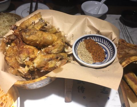 味道不错,环境装点的有些意思。菜品样子有创意,适合朋友小聚,喝茶喝酒都用碗,还有点西北豪放的感觉。葫芦鸡是特色菜,不过更喜欢这里的小吃