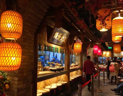 长安大牌档将这第三家门店取名凤舞朝阳,携祥瑞之气落户于朝阳门外,起舞于益田假日世界。这里的装修也充满了长安古城的繁华景象,门口迎宾的老爷爷长衫马褂,让你身临其境,仿佛穿越到那个繁华的唐朝市井,走进大堂,小二、小妹儿们市井的着装,偶尔听到客官再吆喝一声“小二上酒”那种浓浓的韵味更加凸显大长安的繁华。 2000多余平面积,一步一景;20个主题包间,穿越古今。全天候的各式表演,也是另一看点。秦腔戏曲响遏行云,古琴轻弹流转耳畔,水袖摇曳佳人起舞,咿呀皮影传承民俗技艺,铜壶茶艺弘扬茶道文化,好戏连台,令人目不暇接,360度全方位真实感受老长安传统文化的醇厚魅力。
