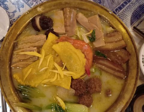 网红店,生意好到简直是不行了,愣是排了两个小时的队才等到位,心里好酸。店内招牌葫芦鸡很香味道也挺不错的,就是不够热然后里面肉稍干涩了。喜欢关中六小碗,味道挺好,肥肉也肥而不腻。豆皮刷牛肚锅也还不错...