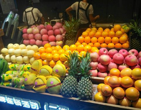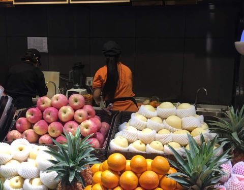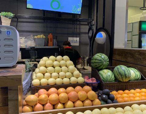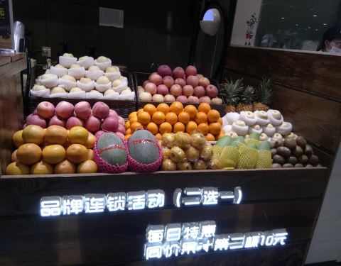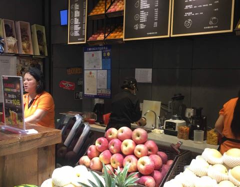 - 纯正的鲜榨果汁店,位置在西湖银泰美食广场地下-1层。店面前面摆放着各种新鲜的水果,非常诱人