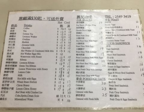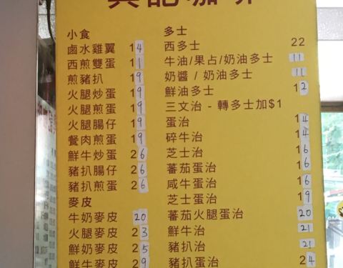 兴记咖啡的老板服务很好很热情,来这里的头天晚上睡得不是太好,所以去兴记吃早餐的时候我就没点咖啡也没点奶茶,只点了个猪扒蛋治。三明治都是烘过底的,所以吃起来热热的也脆脆的,猪扒够厚,所以便宜的价格吃得很实在。而老板看我没有点饮料,也没有说什么,反而主动的帮我递了一杯温开水过来,这样的服务在香港真的很少见。