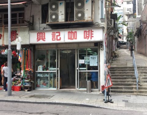 从皇后大道拐进荷里活道的起点处就能看见兴记咖啡,西多士是招牌