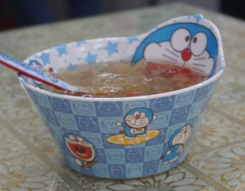 吃过那个难吃的米娅的豆浆油条铺去吃的。 环境接地气,无需过度装修,干净就好,店内还有有关店名的介绍。 听闻老板的外公是鸡鸣酒家经理,外婆是鸡鸣酒家汤包师傅。 店内馅料也全都是手打的,所有的汤包都是现包现蒸的。 好婆汤包,12元一笼,一笼8个,还配以鸡蛋皮汤,好赞。 外观和徐建萍汤包很像,汤包皮薄汁多,肉紧实鲜嫩,稍甜,我喜欢。 桃胶银耳银耳养颜羹,6元一大碗,卡通碗特别卡哇伊。 桃花泪,枸杞,大枣,银耳香甜软糯顺滑,滋阴养颜。 城南老卤蛋2元一个,和以往吃的稍有不多,带着独特的骨香,咸淡相宜,好吃。 强烈推荐,希望味道可以继续传承下去。