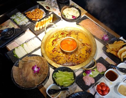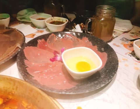 一直红红火火的哥老官,每桌必点的就是创世纪冰粉了 ,九种配料自己配,这种参与感让人感觉自己做了一杯料超多的奶茶,奶茶就是普通奶茶的味道,比较有趣的就是九盘料了。牛蛙这么好吃!!怎么可以不吃!哥老官的牛蛙个头特别大 块块饱满,太美味了,又鲜又嫩 QQ弹弹! 还有特色的干贝咸蛋黄虾滑 ,中间的咸蛋黄不要太多了!!咬下去都是爆浆的咸蛋黄,外面的虾肉鲜美多汁,内馅又是咸香的蛋黄。九种酱料的臭豆腐感觉吃的每一个都是新口味 ,豆腐也是炸得外酥内嫩的。还有八种肚的拼盘!爱吃涮肚的人不要犹豫,直接点 一次性吃到超满足。