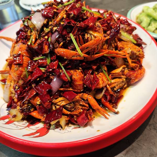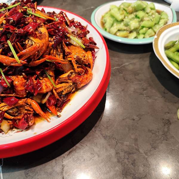 小店在中华路1号,这条路上还蛮多家龙虾店的,看了半天最终选定【於氏龙虾】,店门口超多荣誉认证,感觉这家店口碑不错!店里布置干净清爽,老板很热情,服务很周到,在等餐期间还提供瓜子等小食,上餐速度也挺快,和朋友还没聊两句点的餐就上啦!因为和朋友两个女生来吃,所以就点了招牌龙虾(超多味道可以选择,我们点的十三香龙虾)、土锅巴、地锅鸡。【地锅鸡】特别有家里的味道,锅壁上的饼超级有嚼劲,劲道十足!鸡肉很嫩,十分入味,浓郁的鸡汁和半脆的面饼浑然天成,嚼到根本停不下来!【土锅巴】入口甜脆,后劲咸香,超大一个土锅巴,用筷子戳碎的时候超级爽,夹一小块蘸取特制芡汁,包入口中,在与舌苔接触的瞬间爆发,够香!够鲜!够脆!【十三香龙虾】开启新世界!!!第一次吃十三香口味的,超级奇妙的味道~果真是有十三种香料,不能吃辣同志的福音,剥完龙虾连手都超香的!龙虾每个都很大,形态完美,肉质丰满,吃之前一定要记得吸一口超有味龙虾汁,鲜味灌顶,灵台澄澈!性价比高!吃得很愉快~